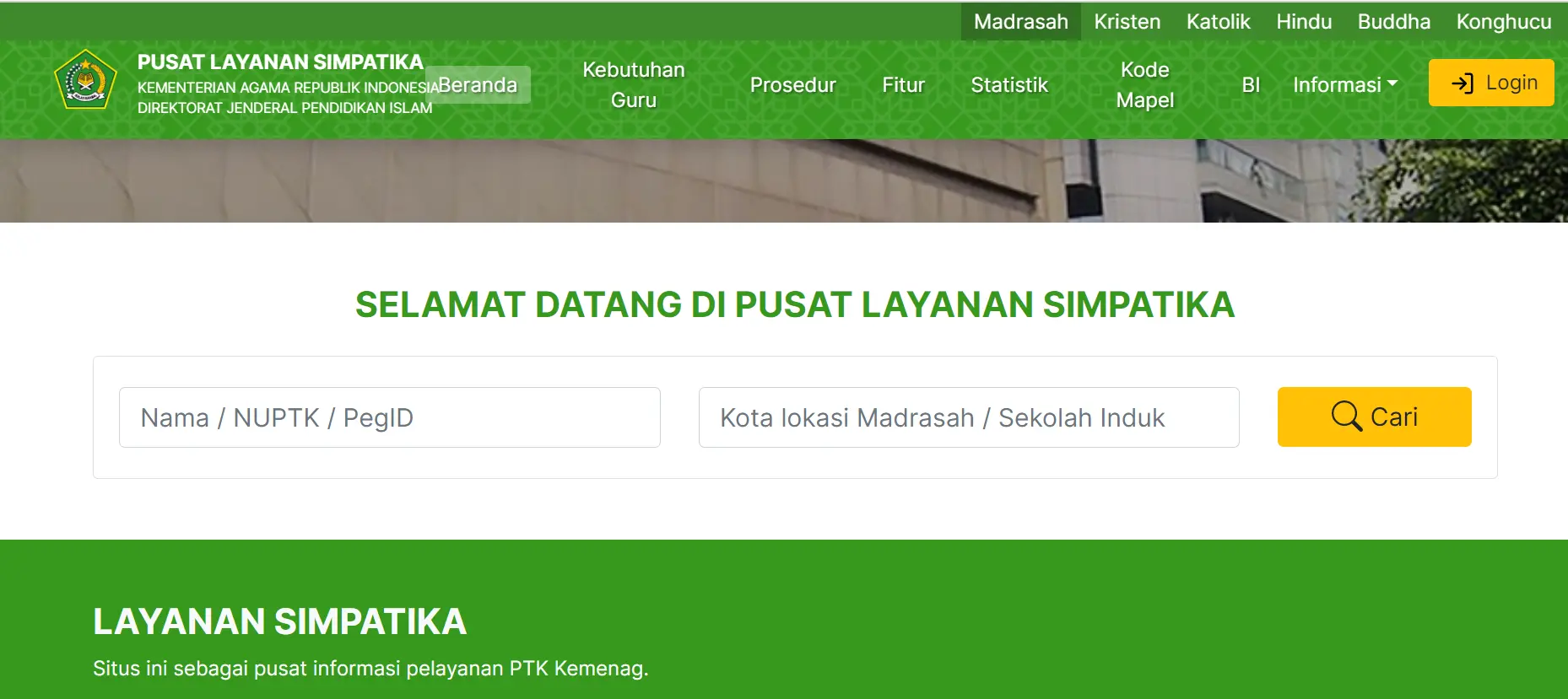 Jika guru PNS dan Non-PNS mengecek sertifikasi harus melalui https://info.gtk.kemdikbud.go.id/, maka guru-guru di Madrasah harus melalui https://simpatika.kemenag.go.id/madrasah . Berikut ini langkah-langkah cek SKTP sertifikasi guru madrasah yang dikutip dari opmabawean.com, diantaranya: