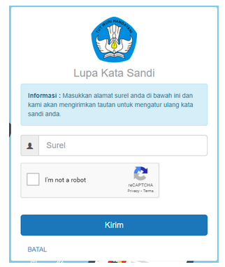 Masukkan alamat email (surel) yang Bapak/Ibu gunakan di profil GTK, lalu centang pilihan “I’m not a robot”. Dengan demikian, sistem akan mereset password Bapak/Ibu secara otomatis melalui email tersebut.