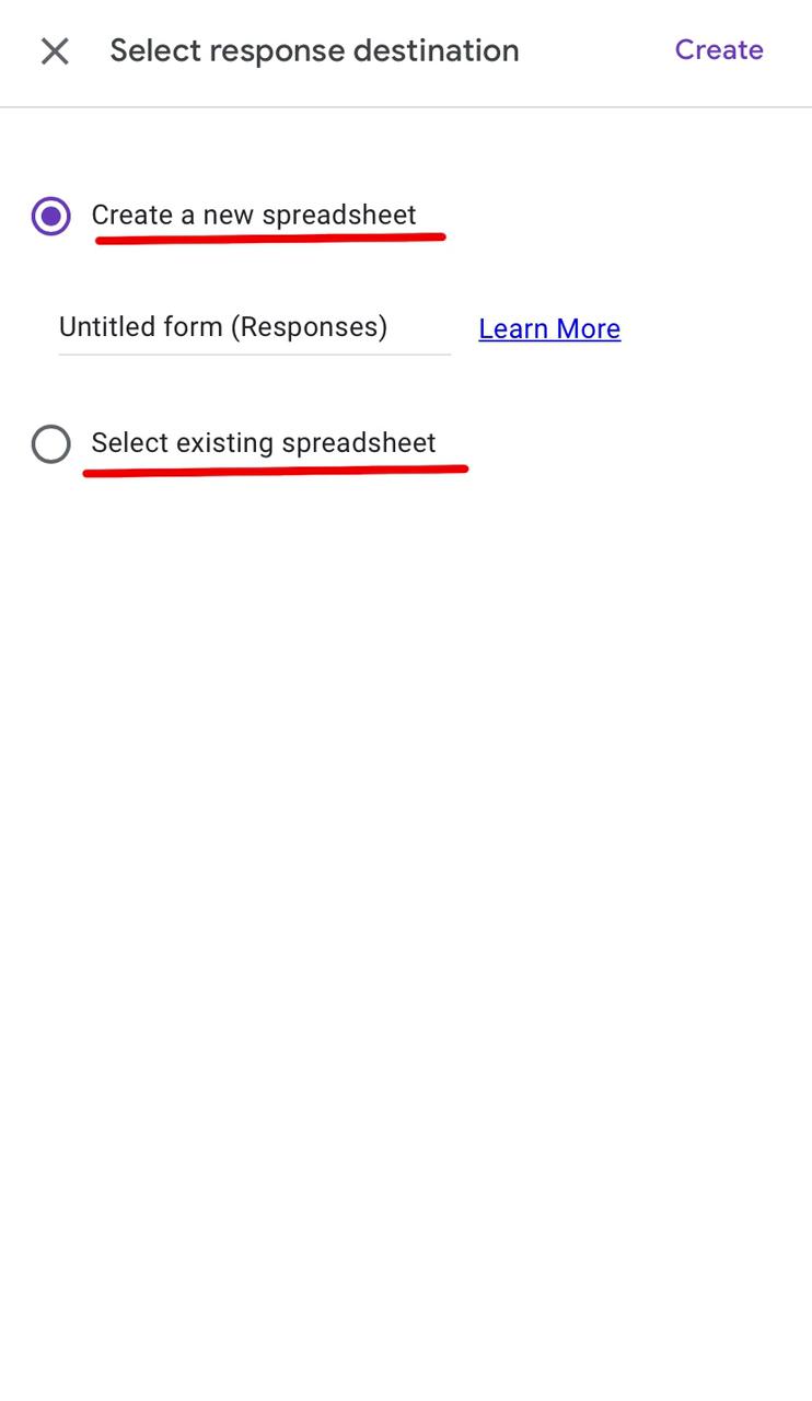 9. Create a new spreadsheet untuk menambahkan spreadsheet baru untuk menyimpan respons di Google Sheets