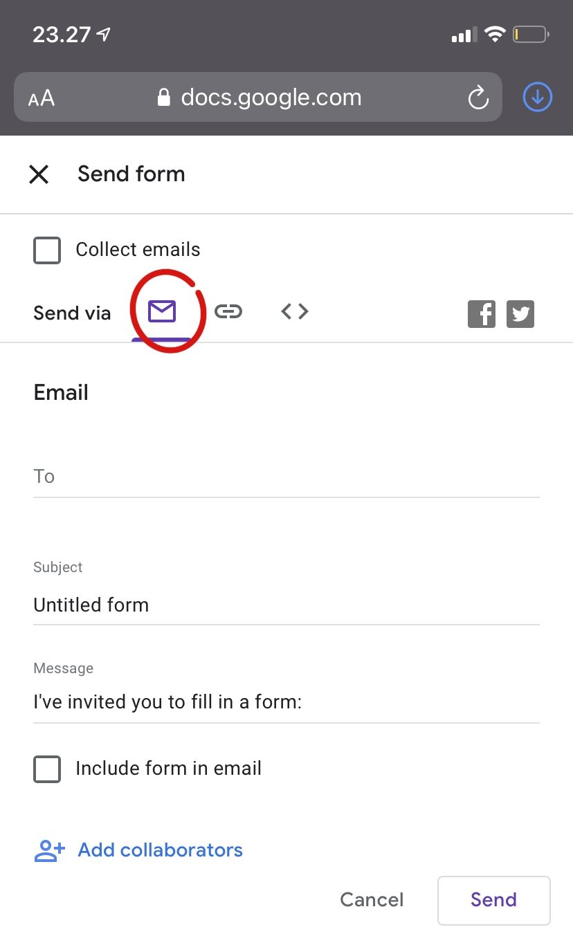 a. Jika ingin mengirim form melalui email, Bapak/Ibu bisa memilih tombol berikut dan isi alamat e-mail tujuan, judul e-mail, dan isi pesannya.