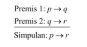 Premis 1: Jika nenek datang, ibu memasak rendang (p -> q)