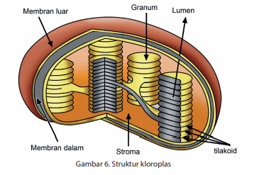 - Kloroplas adalah plastida yang mengandung klorofil. Di dalam kloroplas terdapat tilakoid, yaitu tempat untuk menyimpan unit fotosintesis dan stroma, yaitu cairan di luar tilakoid.