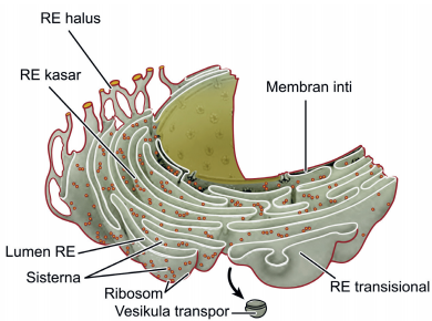 - Sebagai tempat transportasi protein dan karbohidrat untuk organel sel lain, meliputi lisosom, badan Golgi, dan sebagainya.