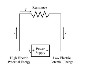 Kita akan memisalkan rangkaian listrik sebagai pompa beserta aliran airnya dalam suatu pipa berupa siklus. Pompa bekerja karena adanya perbedaan tekanan pada air sama seperti baterai yang bekerja karena adanya perbedaan potensial antarkedua kutubnya. Beda potensial ini menyatakan perbedaan jumlah elektron yang berada pada dua kutub suatu sumber daya listrik.