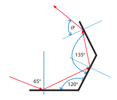 Tentukan besarnya sudut pantul pada cermin ketiga (θ)!
