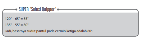 Untuk menentukan besarnya sudut pantul di cermin ketiga, gunakan SUPER “Solusi Quipper” berikut ini.