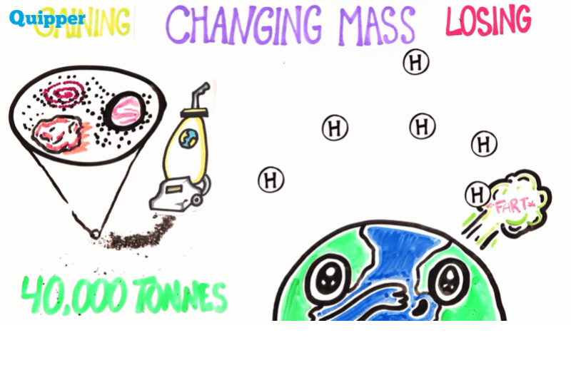 Lalu, bagaimana ya, Bumi mengurangi massanya? Yaitu dengan membuang gas, Quipperian! Ya, massa bumi bisa berkurang hingga 95.000 ton dalam satu tahun hanya dengan membuang gas. Wah, seandainya menurunkan berat badan bisa semudah itu, ya!