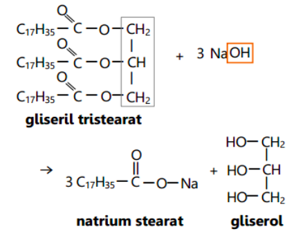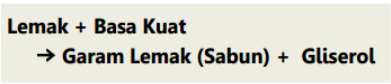 Reaksi saponifikasi/penyabunan adalah campuran lemak dan basa kuat yang menghasilkan sabun (garam lemak) dengan gliserol. Reaksi kimia dari reaksi saponifikasi adalah sebagai berikut: