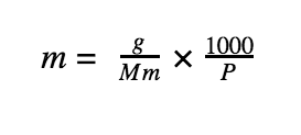 Molalitas adalah konsentrasi larutan yang menyatakan jumlah mol zat terlarut dalam 1 kg atau 1000 gram pelarut dengan lambang m. Rumus untuk molalitas ini dapat kita formulasikan sebagai berikut: