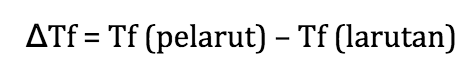 Saat sebuah zat pelarut dicampur dengan zat terlarut yang kemudian menjadi sebuah larutan, titik beku zat pelarut akan mengalami penurunan karena titik beku sebuah larutan lebih rendah daripada titik beku zat pelarut murni. Maka, berlaku rumus: