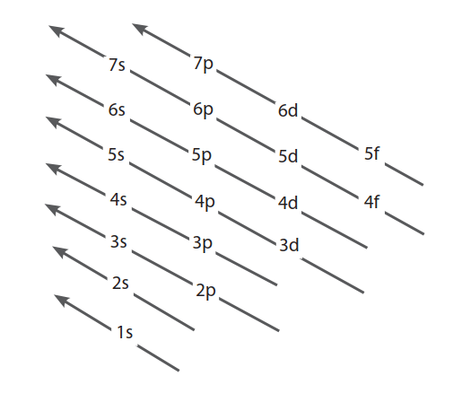 Prinsip Aufbau menyatakan bahwa, secara hipotesis, elektron yang mengorbit suatu atom terlebih dahulu mengisi tingkat energi yang lebih rendah sampai penuh sebelum mengisi tingkat energi yang lebih tinggi. Urutan pengisian elektron berdasarkan tingkat energinya adalah sebagai berikut: