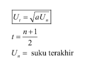 Jika banyak suku (n) ganjil, suku tengah (Ut) barisan geometri dapat dirumuskan sebagai berikut.