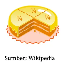 Mulanya kue tart utuh, lalu dipotong menjadi empat bagian sama besar.