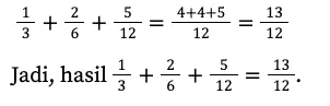 b. Penjumlahan pecahan berpenyebut berbeda