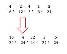Cara mengurutkan pecahan di atas adalah dengan menyamakan dahulu penyebutnya.