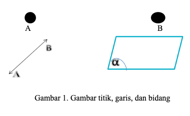 Contoh titik, garis, dan bidang digambarkan di bawah ini :