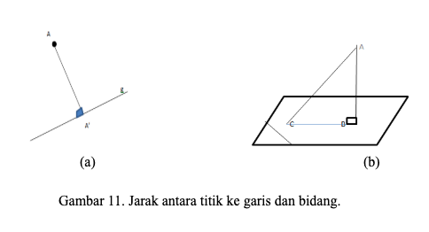- Jarak dari titik ke titik, titik ke garis, dan titik ke bidang