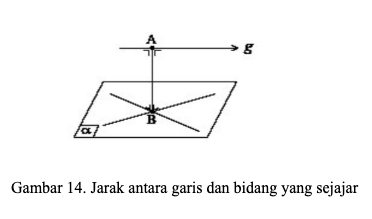Jarak antara garis g dan bidang α = panjang ruas garis AB ( AB tegak lurus bidang α dan garis g).