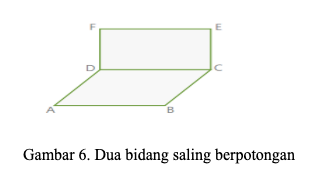 Dua bidang berpotongan apabila terdapat garis perpotongan bidang, yaitu garis persekutuan yang merupakan bagian dari kedua bidang.