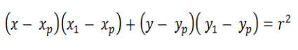 Karena komponen-komponen lingkaran sudah ada titik pusat (Xp, Yp) dan jari-jarinya. Persamaan garis singgung lingkaran dapat dicari menggunakan persamaan:
