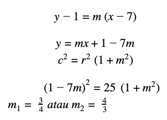 Langkah 2. Cari nilai persamaan garis singgungnya dengan mensubtitusi nilai gradient ke persamaan garis lingkarannya