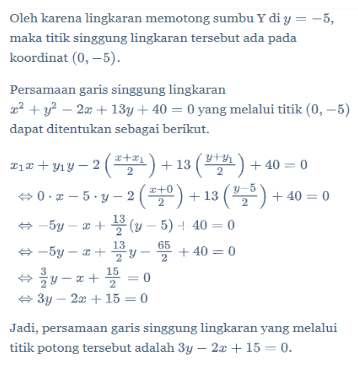 Soal 2: Persamaan garis singgung memotong sumbu -Y
