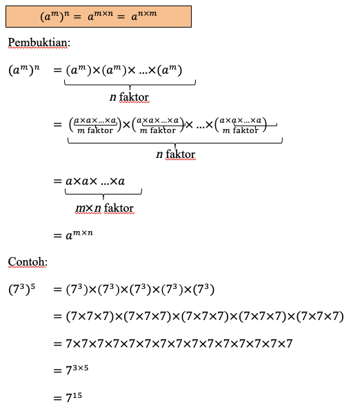 Sudah bilangan berpangkat, masih dipangkatkan lagi? Eits, nggak perlu bingung, sifat keempat ini bisa mempermudah hidupmu. Kamu tinggal mengalikan kedua eksponen saja, beres deh.