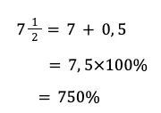 Persen atau per seratus memiliki pembilang 100. Oleh karena itu, cara mengubah pecahan campuran ke persen adalah dengan menjadikannya menjadi bentuk desimal lalu mengalikannya dengan 100%.