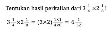 Sebelum dijadikan bentuk perkalian pecahan, kamu harus mengubah pecahan campuran tersebut menjadi pecahan biasa. Perhatikan contoh berikut.