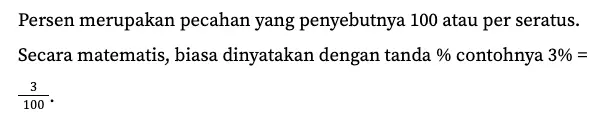 Selain itu, kamu juga bisa memilih cara yang lebih panjang, yaitu dengan menjadikannya pecahan berpenyebut 100 dahulu. Perhatikan contoh berikut.