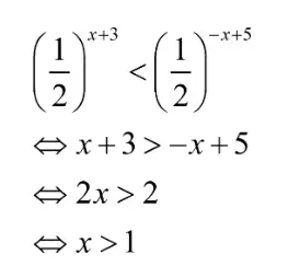 Jika bilangan pokok fungsi eksponennya lebih dari 1, untuk af(x) < ag(x) berlaku f(x) < g(x)