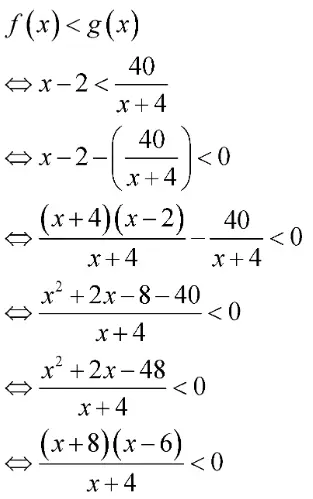 Oleh karena tanda pertidaksamaannya “<0”, maka kamu harus mencari daerah penyelesaian yang bertanda (-). Dengan demikian, nilai x yang memenuhi adalah (x<-8) atau (-4<x<6).