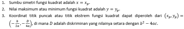 - Jika b = 0 maka sumbu simetri berada tepat di sumbu Y.