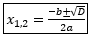 - Jika D > 0 maka grafik parabola memotong sumbu X di titik (x1,0) dan (x2,0). Nilai x1 dan x2 dapat ditentukan dengan rumus kuadratis berikut: