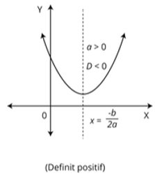 - Jika D < 0 dan a > 0 maka grafik parabola selalu berada di atas sumbu X atau disebut definit positif.