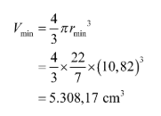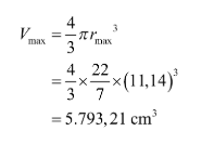Jadi, volume bola minimal dan maksimalnya berturut-turut adalah 5.08,17 cm3 dan 5.793,21 cm3.
