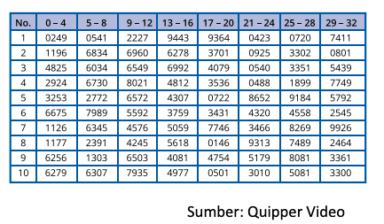 Adapun contoh tabel bilangan acak adalah sebagai berikut.