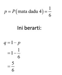 q = 1 – p = peluang gagal.
