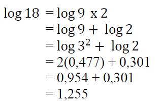 Dari hasil hitungan tersebut diketahui bahwa log18 adalah 1,255. Dengan demikian, jawaban yang tepat untuk soal tersebut ialah pilihan jawaban B.