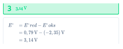 - Tegangan yang dihasilkan oleh sel volta