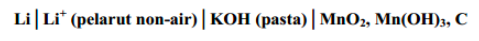 Komponen anoda dari baterai ini adalah litium, sedangkan katodanya adalah MnO2.  Baterai ini dapat menghasilkan arus listrik yang lebih besar dan daya tahannya lebih lama.