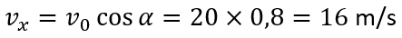Dari suatu titik P di atas tanah, sebuah bola dilemparkan dengan kecepatan awal 20 m/s dan sudut elevasi 37o (sin 37o = 0,6). Jika diketahui percepatan gravitasi adalah 10 m/s2, berapakah kecepatan bola saat t = 0,4 detik?