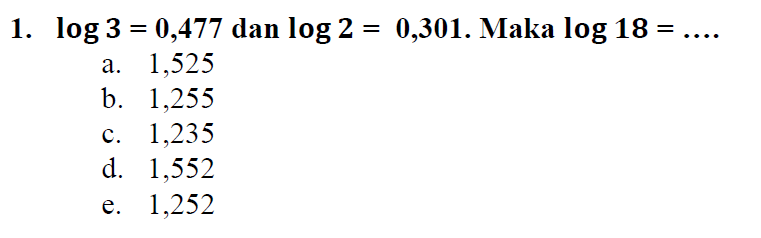 Dari hasil hitungan tersebut diketahui bahwa log18 adalah 1,255. Dengan demikian, jawaban yang tepat untuk soal tersebut ialah pilihan jawaban B.