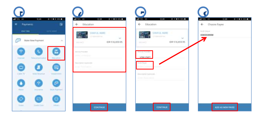 - Pilih Menu Payment / Pembayaran, kemudian pilih Submenu Education / Pendidikan.