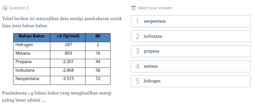 Contoh soal SBMPTN Termokimia Nomor 5