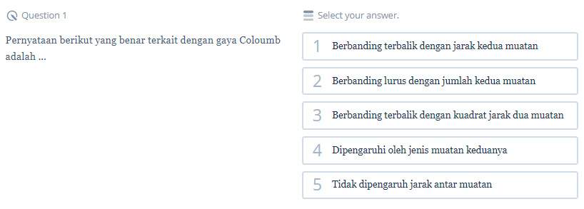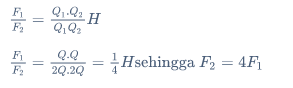 Besarnya gaya tarik-menarik atau tolak-menolak antara dua benda bermuatan listrik berbanding lurus dengan muatan masing-masing benda dan berbanding terbalik dengan kuadrat jarak antara kedua benda tersebut. Maka, jawaban yang paling tepat adalah pilihan nomor 3.