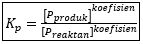 Harga Kp ditentukan berdasarkan perbandingan hasil kali tekanan parsial produk yang dipangkatkan koefisiennya terhadap hasil kali tekanan parsial reaktan yang dipangkatkan koefisiennya: