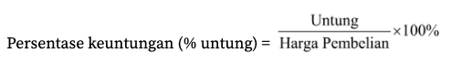Keuntungan biasa disebut sebagai laba. Seorang pedagang dikatakan untung jika harga jual barang lebih besar daripada harga belinya. Secara matematis, keuntungan dirumuskan sebagai berikut.