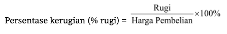 Kerugian terjadi jika harga jual barang lebih kecil daripada harga belinya. Secara matematis, kerugian dirumuskan sebagai berikut.