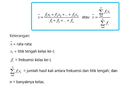 Secara matematis, rata-rata data berkelompok dirumuskan sebagai berikut.
